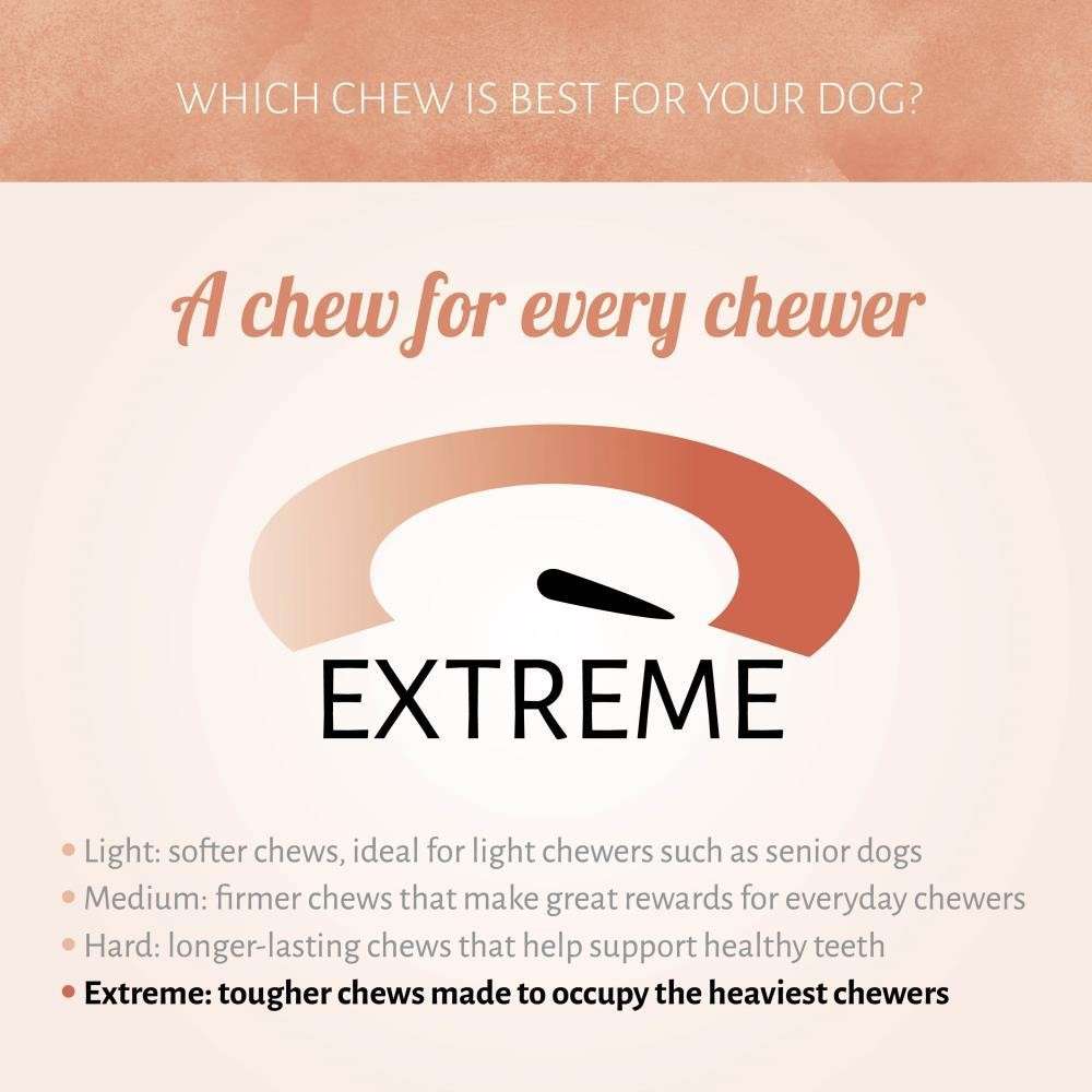 Geben Sie Ihrem Kumpel das absolut Beste mit unserem Heavy Prime Bone Weiß Hundekausnacks. Diese naturbelassenen Rohhautknochen sind einfach, aber pfotenschonend. Die einzigartige kaubare Textur fördert eine gute Zahnhygiene, während Ihr Hund kaut.