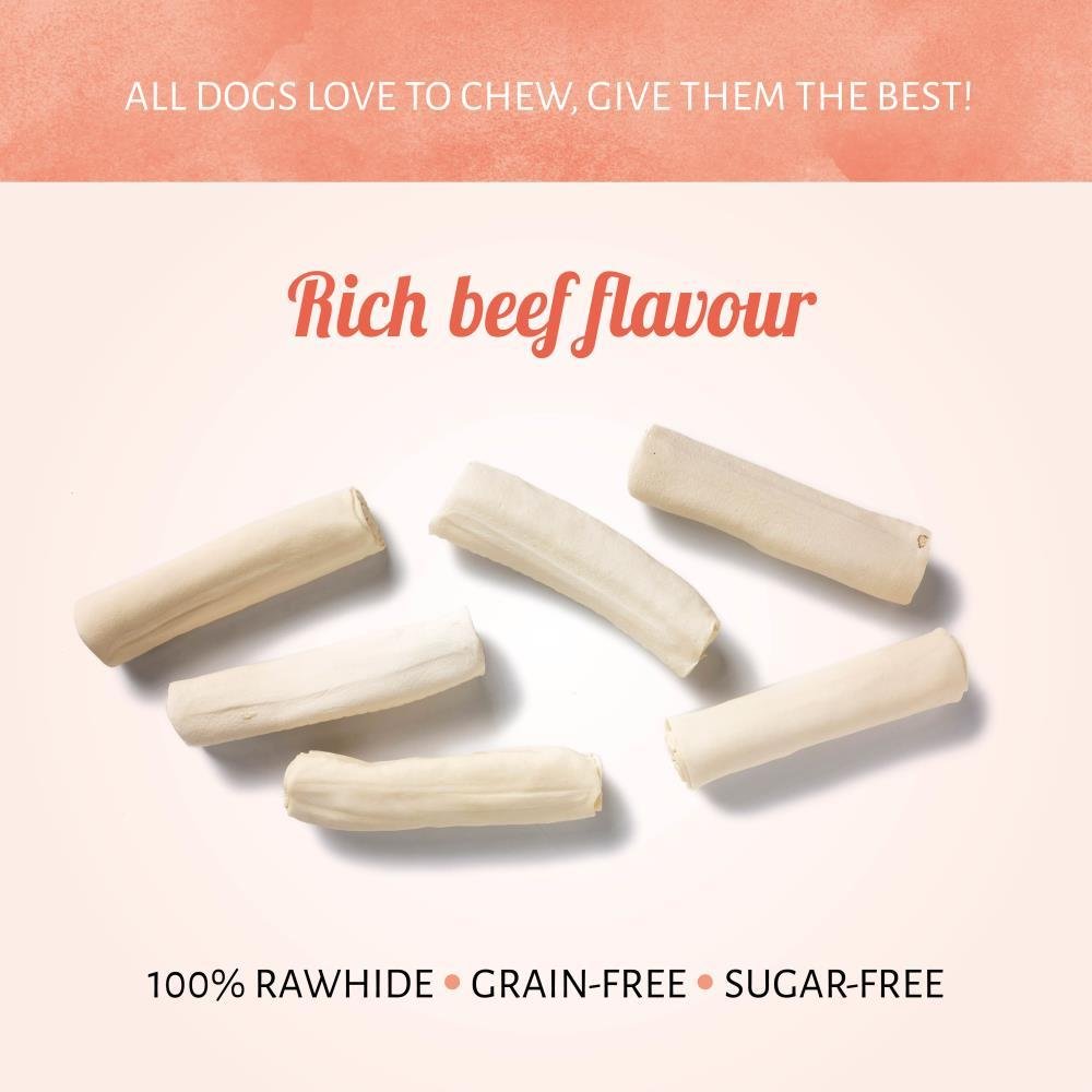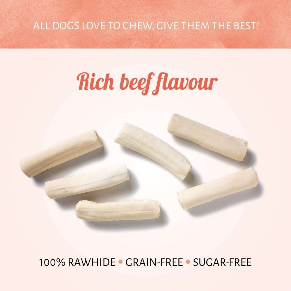 Mit einem reichhaltigen Rindfleischgeschmack in jedem Bissen sind unsere Roll Weiß Hundesnacks der Liebling Ihres Hundes. Dieser rein natürliche Rohhaut-Kausnack ist für Ihren Hund befriedigend und stellt einen sicheren Genuss dar. Er ist für Hunde gemacht, die viel Zeit zum Kauen brauchen.