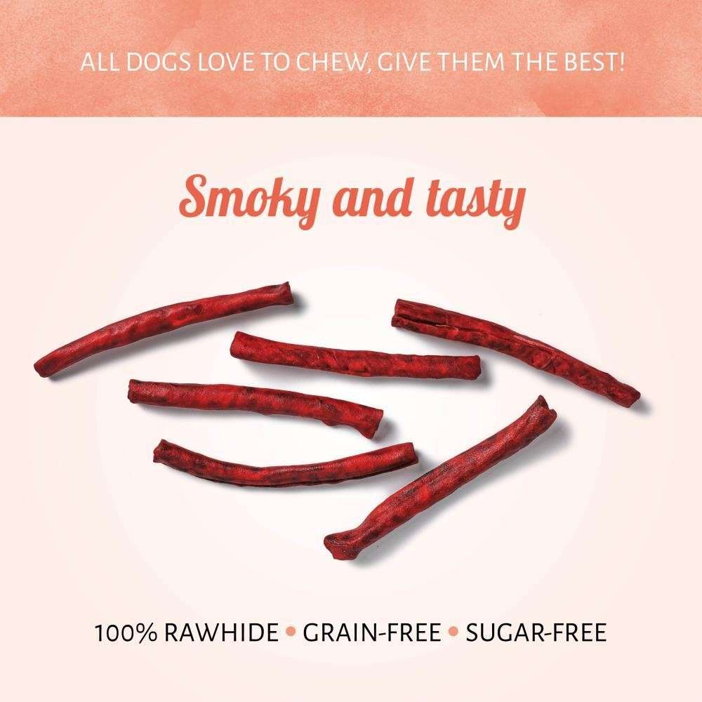 Mini Roll Rot Hundekausnacks wurden entwickelt, damit Sie Ihren kleinen Hund oder Welpen mit einem besonderen Hundekausnack belohnen können. Welcher Hund würde sich nicht auf den leckeren Preis konzentrieren - einen echten Fleischkausnack mit Räuchergeschmack