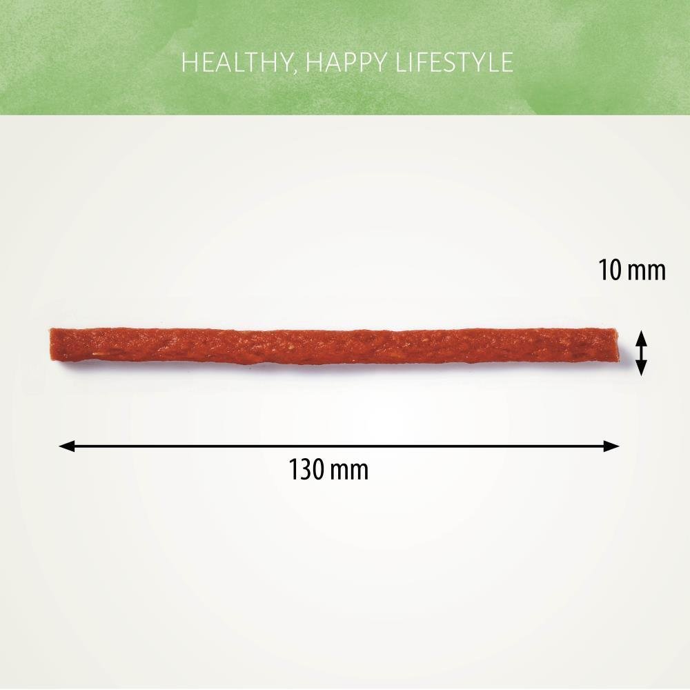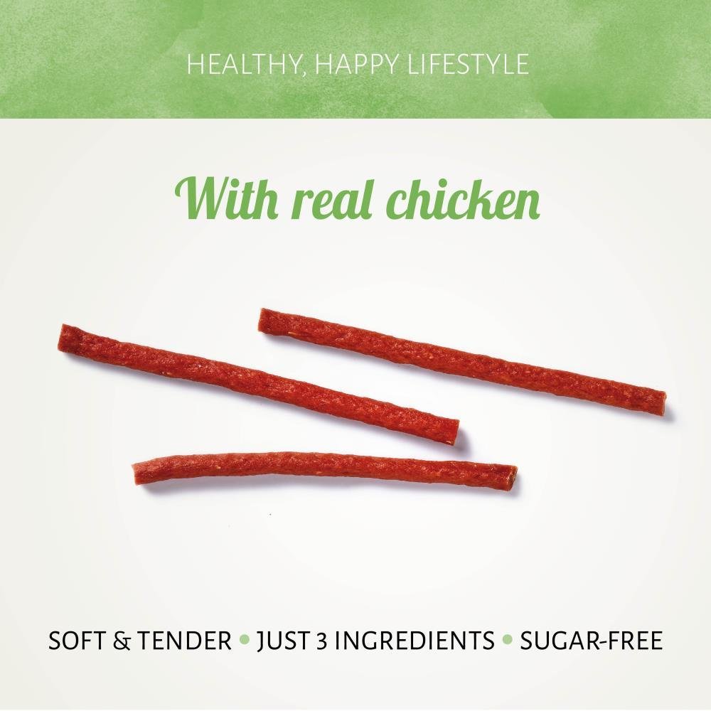 Diese wohlschmeckenden Antos Chicken Gold Sticks werden mit echtem Hühnchen als Zutat Nummer 1 hergestellt. Sie sind köstliche, gesunde Snacks mit echtem Hühnerfleisch und enthalten keinerlei Zusatzstoffe. Die angenehm zähe Textur harmoniert perfekt mit dem beliebten Hähnchengeschmack, sodass deine Fellnase jedes Mal mit dem Schwanz wedelt, wenn du die Tüte öffnest.