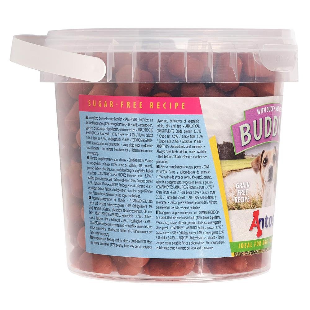 Belohnen Sie Ihren wohlerzogenen Kumpel mit Buddies Ente Hundeleckerlis. Die Snacks sind knackig und haben einen unvergleichlichen Geschmack in jedem Bissen. Entscheiden Sie sich für ein schmackhaftes Leckerli, das Ihrem Hund den außergewöhnlichen Geschmack gibt, den er mag.