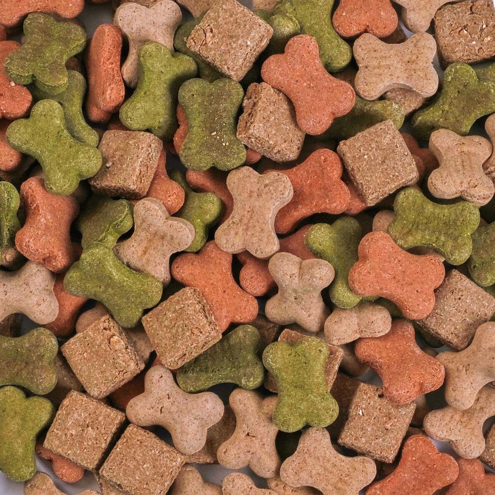 Richtig knusprige und leckere Kekse. Unser zuckerfreier Bunter Mix wird aus den besten Zutaten hergestellt und mit Vitaminen und Antioxidantien angereichert, damit Ihr Hund diese Leckerlis ebenso nahrhaft wie lecker findet.