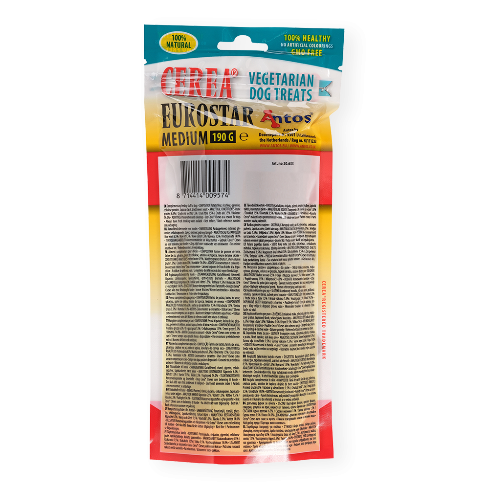 Unser Cerea Eurostar ist aus natürlichen und gesunden Zutaten hergestellt und schmeckt unglaublich gut. Ihr vierbeiniger Freund wird nichts dagegen haben, sich um seine Mundgesundheit zu kümmern. Sie können den Cerea Eurostar in Verbindung mit der tägliche Putzroutine einsetzen, aber das muss nicht sein.