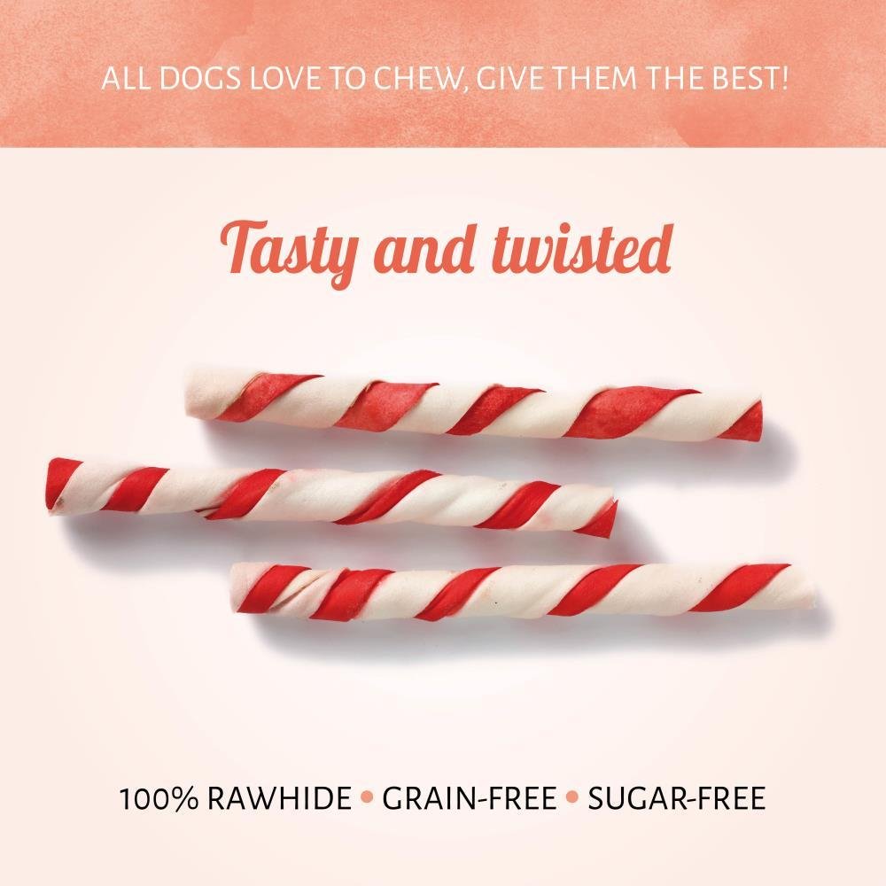 Probieren Sie einen klassischen, proteinreichen Kausnack für Hunde aus: ein Snack mit dem gewissen Pfiff. Unsere ChaCha's Roll Rot besitzen eine interessante, gedrehte Textur, von der Ihr Hund ganz sicher begeistert sein wird. Sie sind für das Kauvergnügen Ihres Hundes gemacht und sind seiner allgemeinen Mundhygiene dienlich.