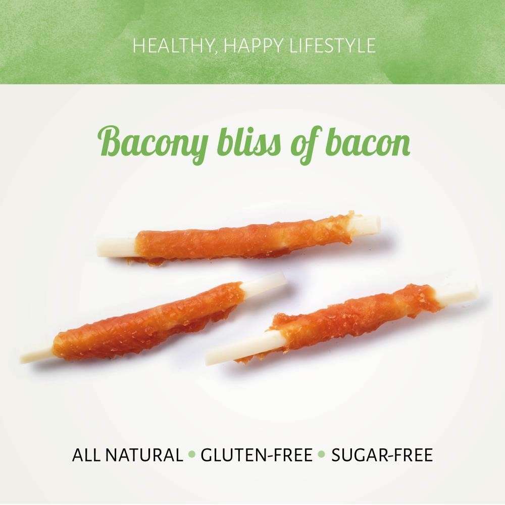 Belohnen Sie Ihren Kameraden mit den schmackhaften Chicken D'light Bacon-Streifen. Der pikante, fleischige Geschmack des Huhns ist um eine Speckstange gewickelt: eine unwiderstehliche Kombination aus Geschmack und Textur.