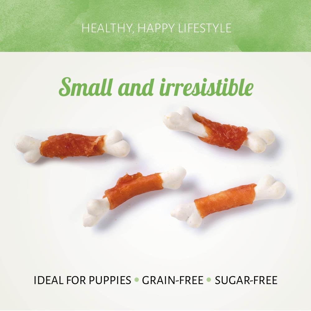 Die perfekte Größe für ein ausgezeichnetes Trainingsvergnügen für Hunde jeder Größe. Lernen Sie unser Chicken D'light Calcium kennen. Diese kleinen Knochen eignen sich perfekt, um Ihren Hund zu Hause oder unterwegs zu belohnen.