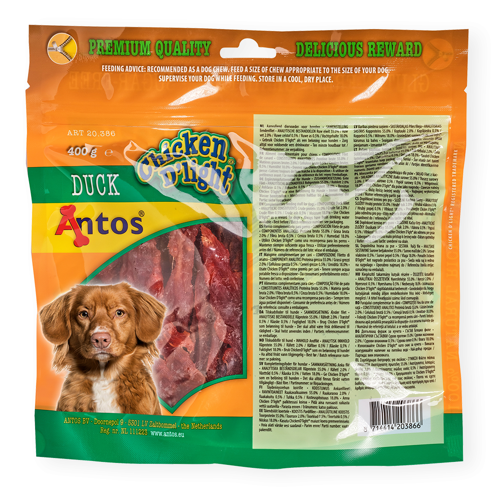 Belohnen Sie Ihren pelzigen Freund mit dem vollen Geschmack von Ente mit Chicken D'light Duck. Diese ganz natürlichen getreidefreien Leckerlis für Hunde zeichnen sich durch schmackhafte Entenbrust aus, die ohne jegliche Zusatzstoffe sorgfältig geröstet wurde.