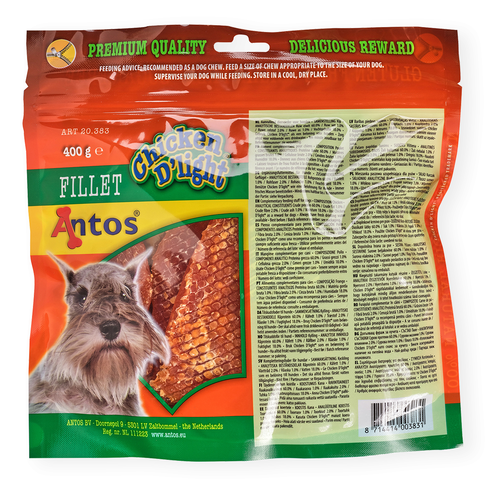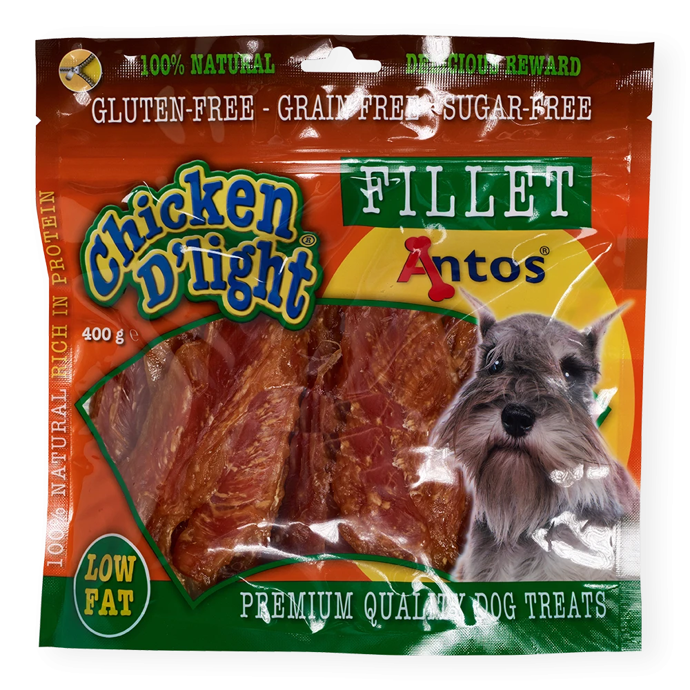 Geben Sie Ihrem Hund Chicken D'light Fillet. Diese Hühnerleckerlis sind köstlich saftige Leckereien für große und kleine Hunde. Sie sind glutenfrei und die Leckerlis werden Ihren Hund glücklich und zufrieden machen.