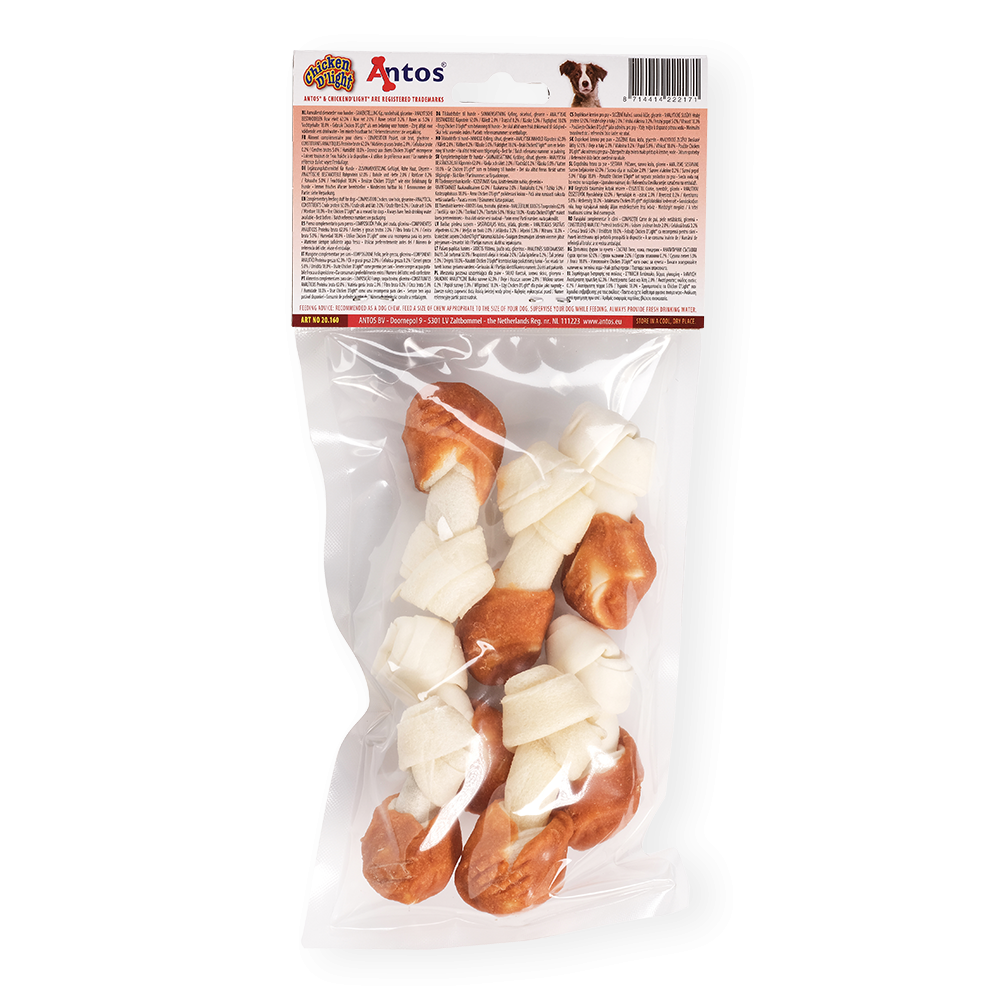 Chicken D'light Knots verwöhnt Hunde mit einer köstlichen Kombination aus Huhn und Rohhaut in einem schmackhaften Kauteil. Diese ganz natürlichen Leckerlis werden aus feinstem Hühnerfleisch hergestellt, das um einen Rohhautknochen gewickelt worden ist.