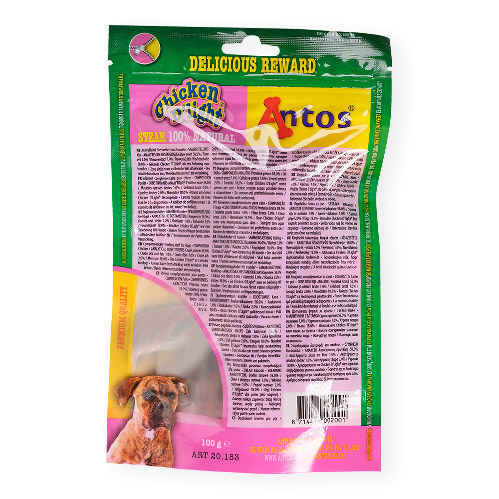 Weil für Ihren pelzigen Freund nur das Beste gut genug ist, sollten Sie ihn oder sie mit Chicken D'light Steak belohnen. Sie bestehen zu 100 % aus Hühnerfleisch und sind ein eiweißreicher Leckerbissen, der mit jedem Bissen sättigt und nahrhaft ist.