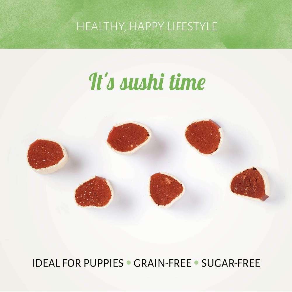 Hunde können Sushi essen! Unsere Chicken D'light Sushi-Leckerlis ist ein schmackhaftes Fest für Hunde, aus reinem Hühnerfleisch, umhüllt von nährstoffreichem Kabeljau. Unglaublich köstlich, sorgen diese Leckerlis für eine gesunde Haut und ein glänzendes Fell.