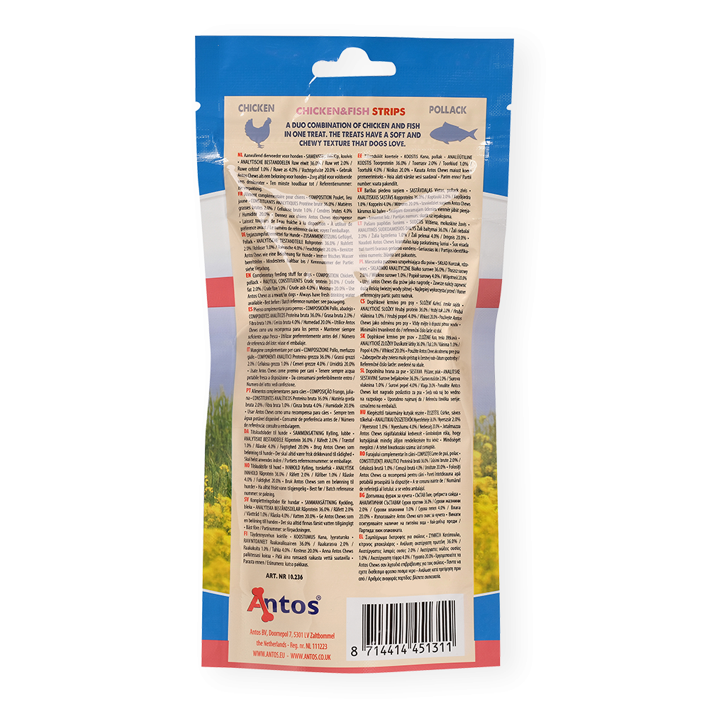 Schenken Sie Ihrem Hund ein strahlendes Lächeln auf die schmackhafteste Art und Weise, mit unseren Chicken&Fish Strips. Hergestellt aus nur zwei Zutaten, nämlich Huhn und Seelachs, bieten diese großartigen Leckerlis Ihrem geliebten Freund zahlreiche Vorteile.