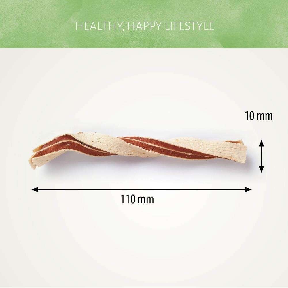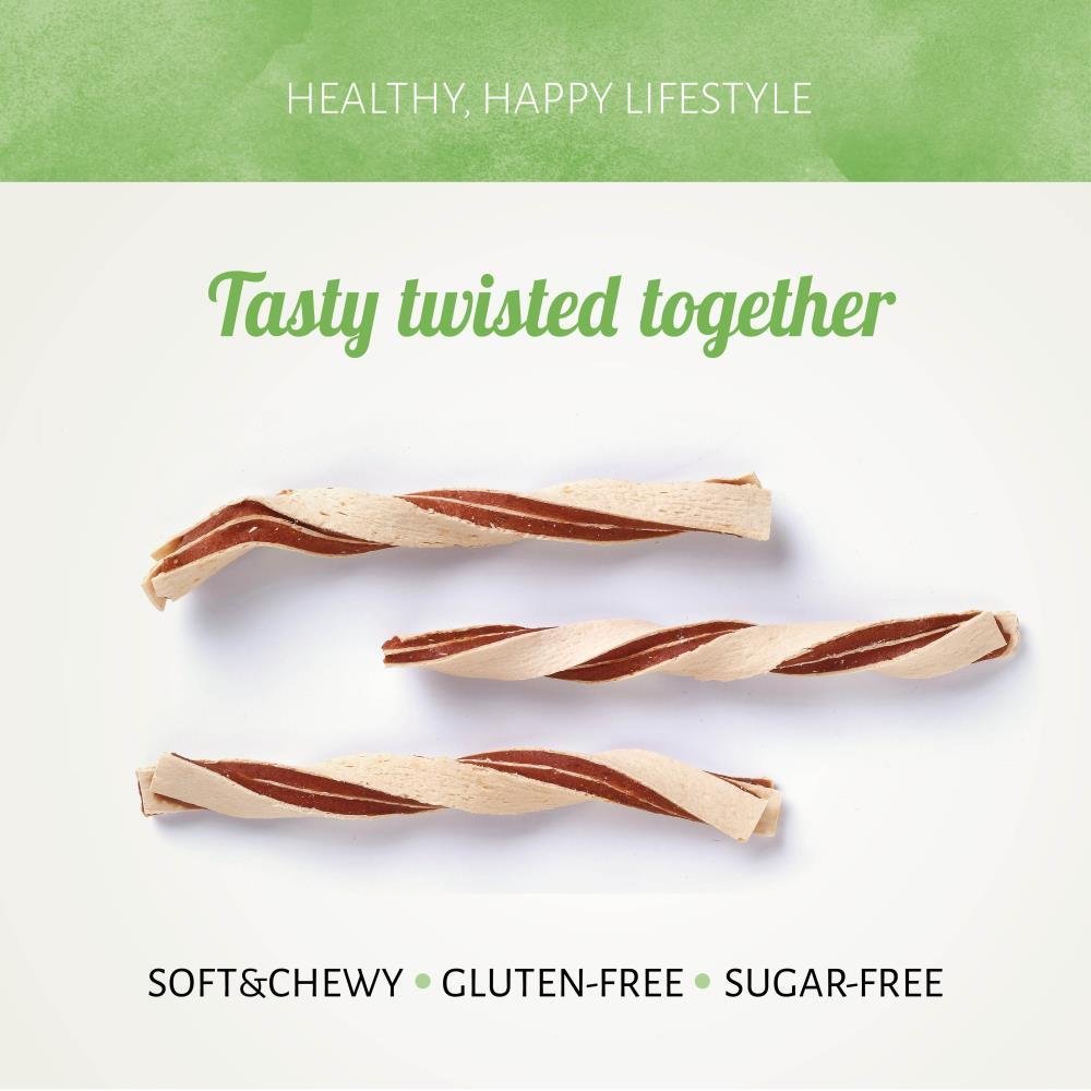 Unsere Chicken&Fish Twists werden aus Hühner- und Seelachsstreifen in gedrehter Form hergestellt. Von Natur aus fettarm mit einem köstlichen Geschmack, den Ihr Hund lieben wird. Diese Leckerlis tragen dazu bei, eine gesunde Haut und ein gesundes Fell zu erhalten.