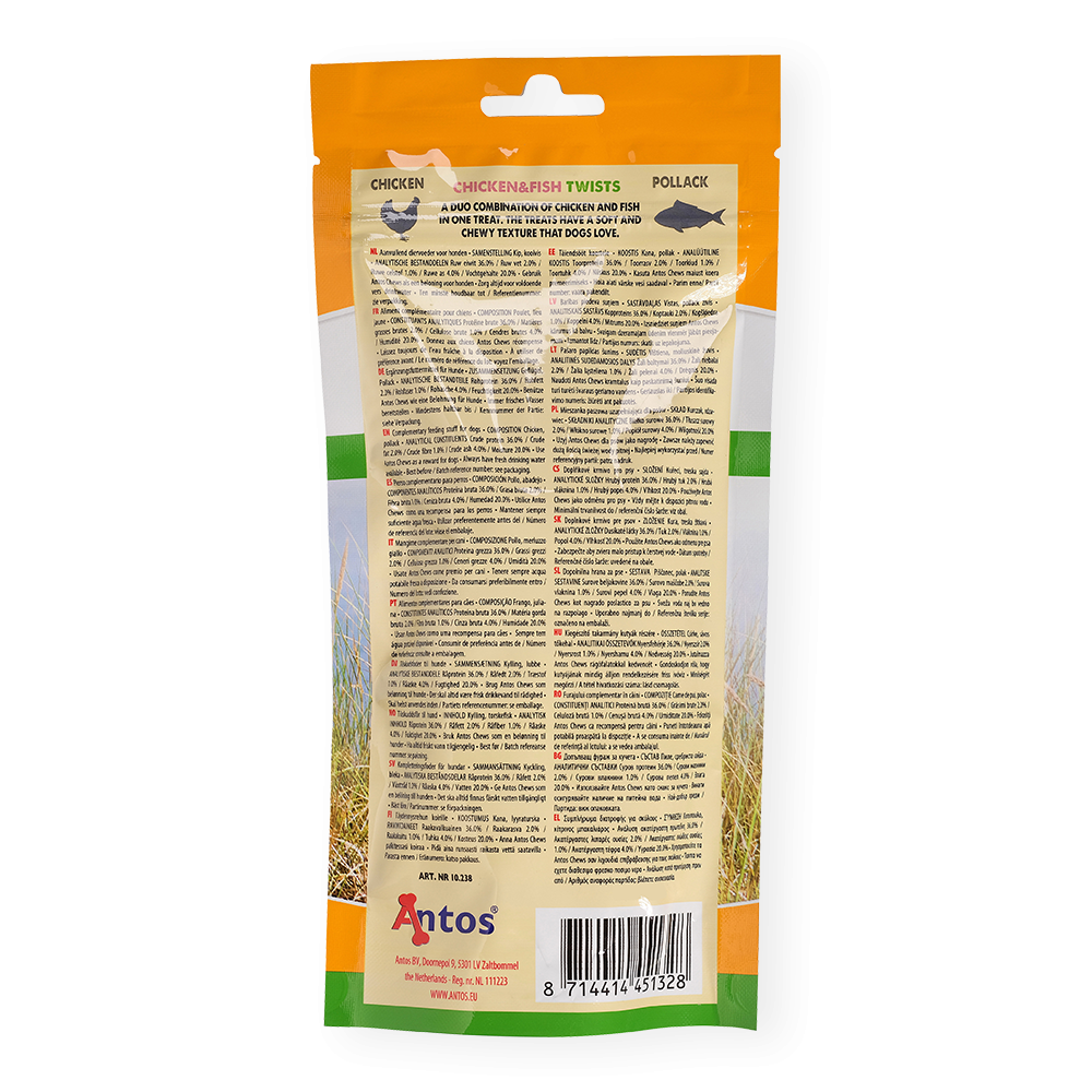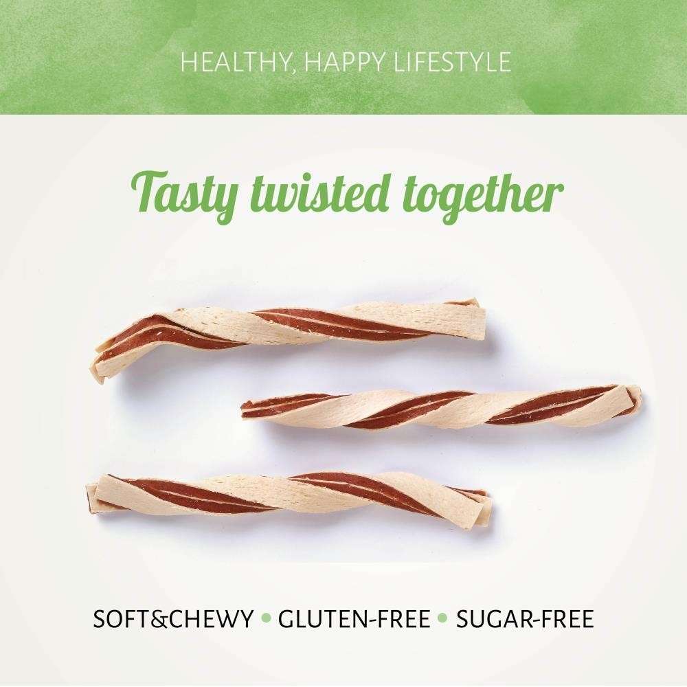 Chicken&Fish Twists, ein Snack vollgepackt mit schmackhaftem Huhn, das mit gesundem Fisch zusammen serviert wird. Die Leckerlis eignen sich perfekt als Snack oder als Trainingshilfe und tragen dazu bei, Plaque zu reduzieren und das Zahnfleisch Ihres Hundes gesund zu erhalten.