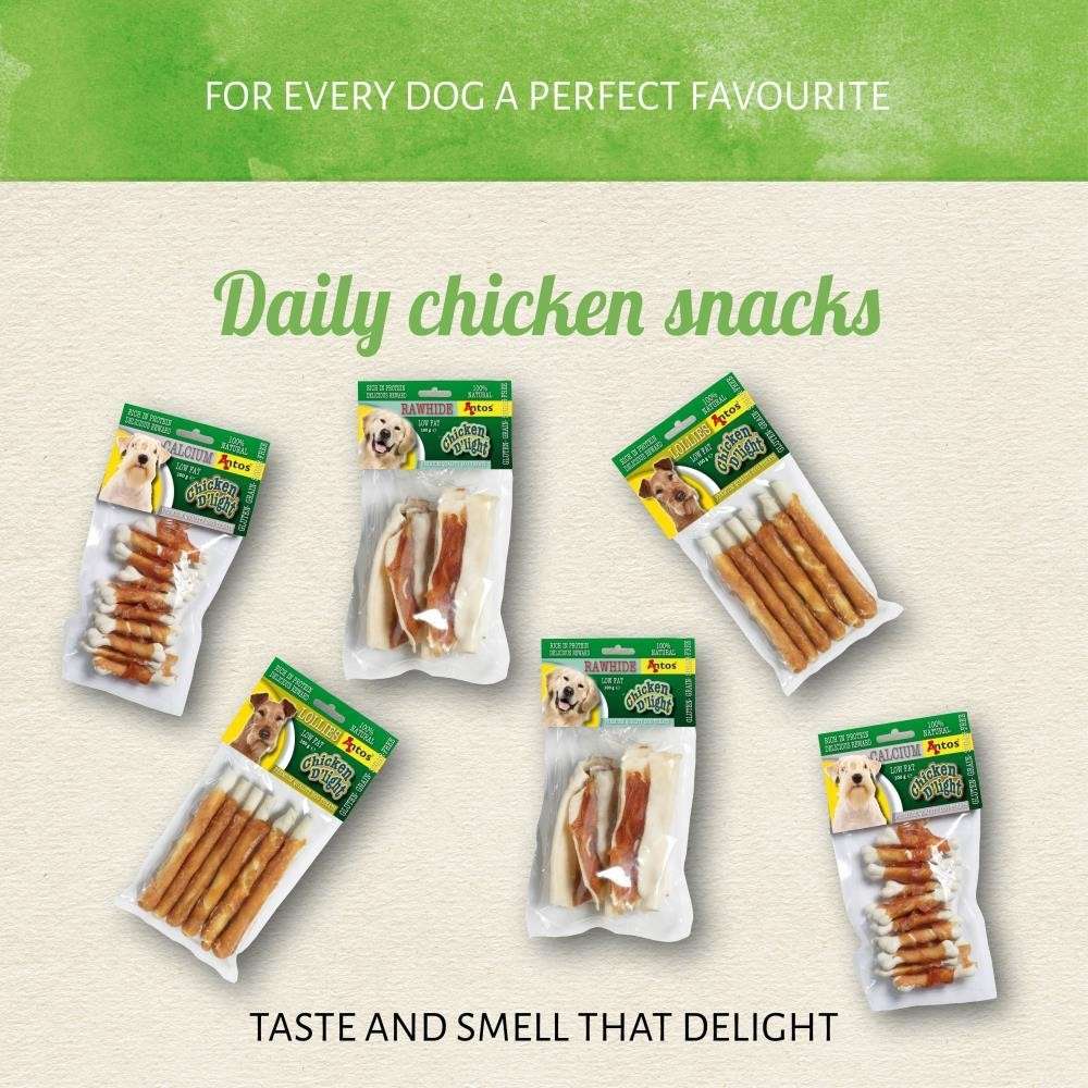 Ihr Hund liebt Hühnchen! Das Chicken Multipack enthält drei Ihrer Lieblingsleckerlis von ChickenD'light. Die einfachen Leckerlis enthalten köstliches Huhn mit echter Rohhaut, für einen Geschmack und Geruch, der Ihren "pelzigen Freund" begeistern wird.