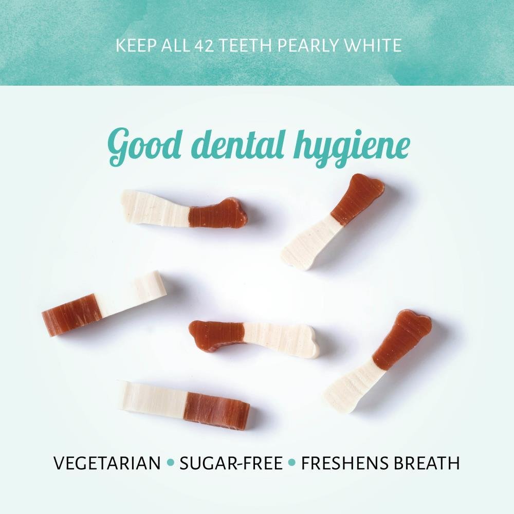 Schlechter Hundeatem gehört der Vergangenheit an, wenn Sie Ihrem Hund die Dental D'light Bones für frischen Atem geben. Die vegetarischen Leckerlis sind so konzipiert, dass sie eine gute Zahnhygiene, frischen Atem und saubere Zähne fördern.