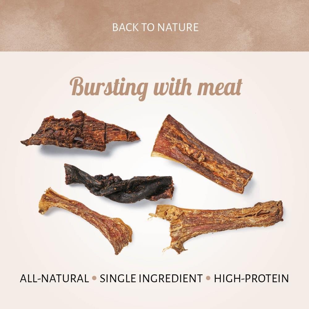Unser Dörrfleisch schmeckt ganz nach Fleisch, einem Geschmack, nach dem sich Ihr Hund sehnen wird. Der Rinderschlund wird langsam geröstet, um die natürlichen Aromen hervorzubringen. Die kaubare Textur trägt auch zur Förderung der Zahngesundheit Ihres Hundes bei.