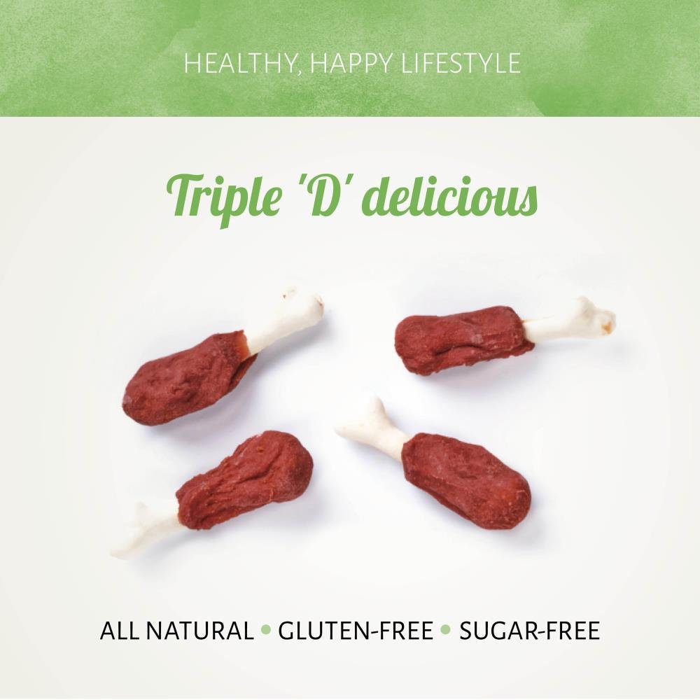 Voller Geschmack von echter Premium-Ente, die Ihr Hund mit Sicherheit lieben wird. Lernen Sie unsere Duck D'light Drumsticks kennen. Diese einzigartige Mischung aus Ente und Kalzium in einem Leckerli ist perfekt zum Trainieren, Füttern oder einfach nur zum Verwöhnen!