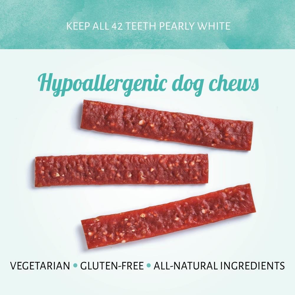 Genießbar, vegetarisch, glutenfrei - unsere Farm Flat Streifen sind eine gesunde Alternative für Hunde mit Gluten-Intoleranz oder Nahrungsmittelunverträglichkeiten. Sie sind aus natürlichen Zutaten hergestellt, mit Gewürznelkenöl für einen unwiderstehlichen Geschmack!