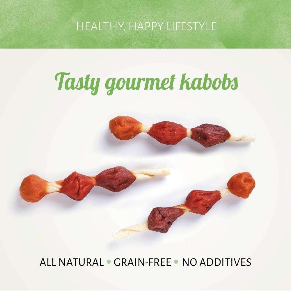 Finest Poultry Brochettes verwöhnen Hunde mit einer köstlichen Kombination aus drei Lieblingsgeschmacksrichtungen, alles in einem leckeren Kauspiel. Diese rein natürlichen Leckerlis werden aus Rohhaut hergestellt, die mit leckerer Hühner-, Enten- und Hühnerleber zusammengebracht wird.