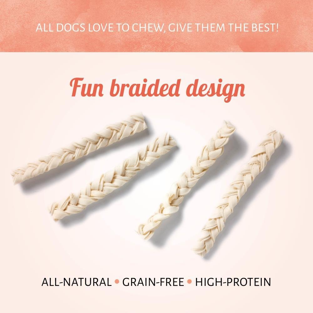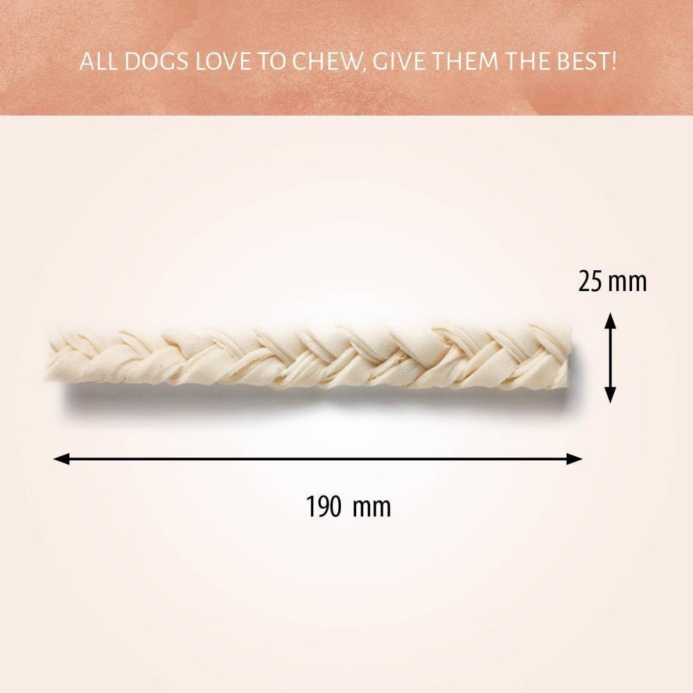 Bringen Sie mehr Spaß in den klassischen Rohhaut-Kausnack! Ihr Hund wird die zu einem Zopf Geflochtene Rinderhaut lieben, die jederzeit ein köstliches Leckerli bietet. Die proteinreichen Kausnacks bieten Ihrem besten Freund ein hochwertiges Kauerlebnis.