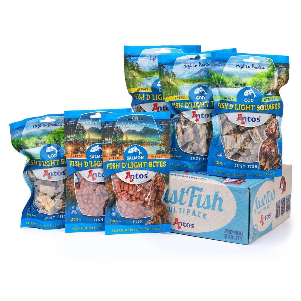 Das Meer hat noch nie so gut geschmeckt, dank unseres JustFish Multipacks. Diese leckere Box bietet gesunden Fischgenuss aus dem Meer und ist vollgepackt mit allem Guten. Lassen Sie Ihren Hund die perfekte Balance dieser knusprigen, schmackhaften und gesunden Leckerlis aus Fisch genießen.