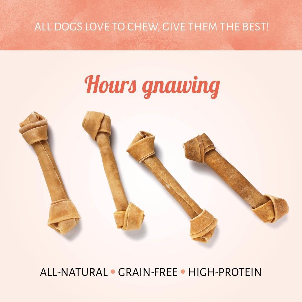 Ihr Hund wird stundenlang an unseren leckeren Kauknoten Hundeknochen nagen. Diese naturbelassenen Kausnacks aus Rohhaut bieten einen natürlichen, herzhaften Geschmack, von dem Ihr vierbeiniger Freund begeistert sein wird. Damit halten Sie Ihren Hund von Ihren Schuhen und Möbeln fern!