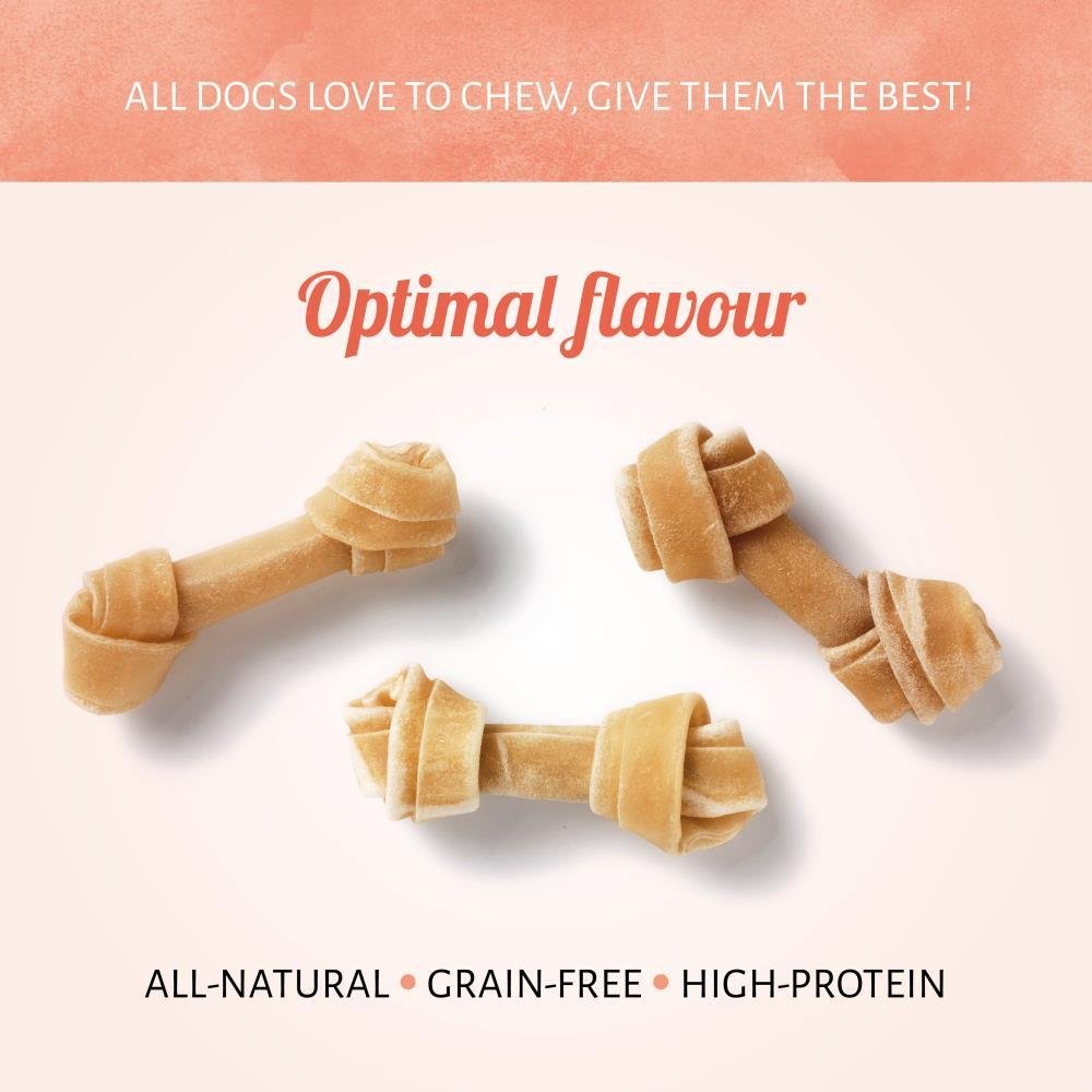 Gönnen Sie Ihrem Hund den unübertroffenen, unwiderstehlichen Geschmack von Kauknoten Hundekausnacks. Jeder dieser lang anhaltenden Belohnungssnacks wird sorgfältig hergestellt, um optimale Qualität und Geschmack zu gewährleisten. In jedem Bissen steckt natürliche Rohhaut.