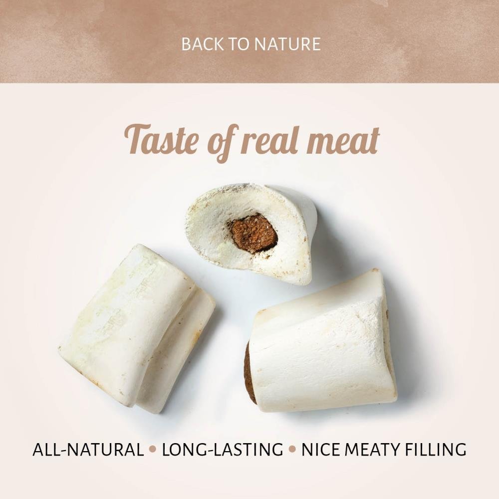 Unser Markknochen Natur Pastete ist ein tolles Produkt, um Ihren Hund auf Trapp zu halten; gleichzeitig wird er den zusätzlichen Geschmack der fleischigen Füllung schätzen lernen. Der leckere natürliche Hundesnack ist die perfekte Art, Ihren besten Freund zu verwöhnen.
