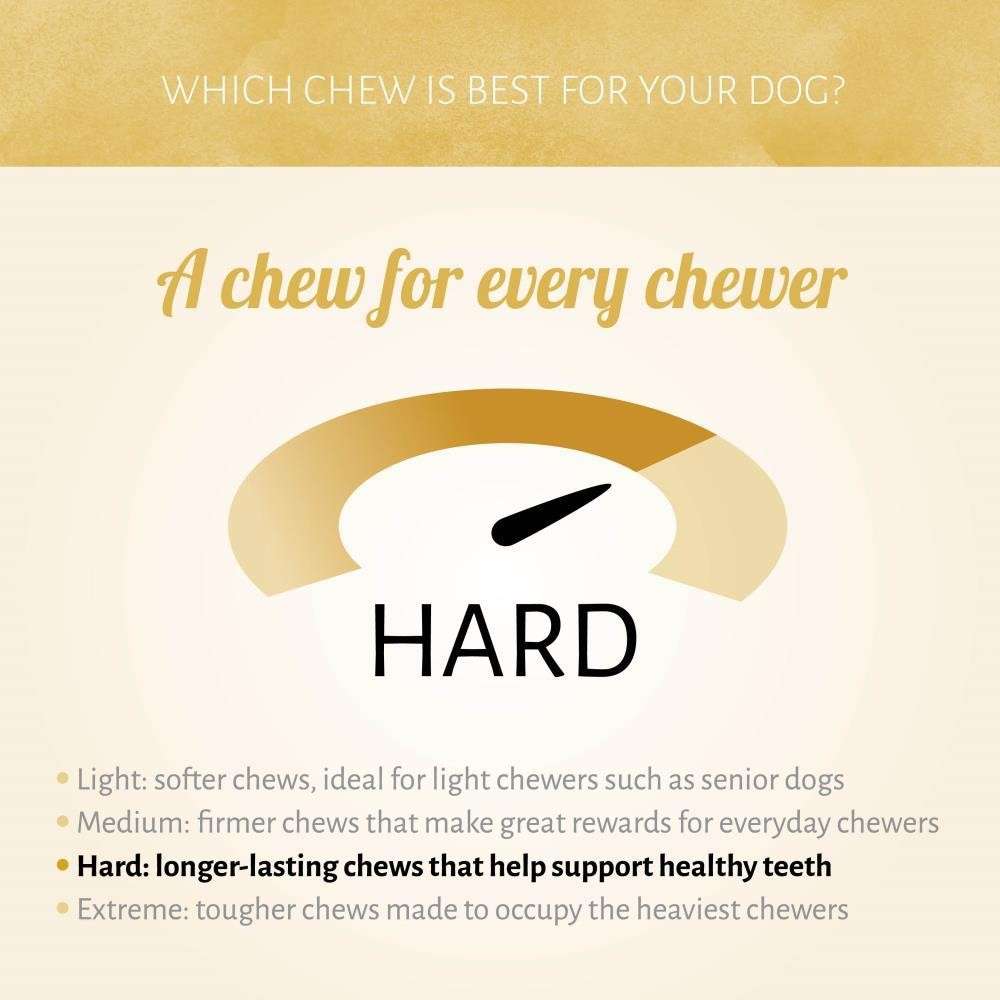 Meaty Bone Dental sind bei jedem Bissen lecker und stark. Das natürliche Rauhautkauen erfrischt den Atem Ihres Hundes und lässt seine Zähne funkeln. Nur mit echten Zutaten von den besten Rindern der Welt gemacht.