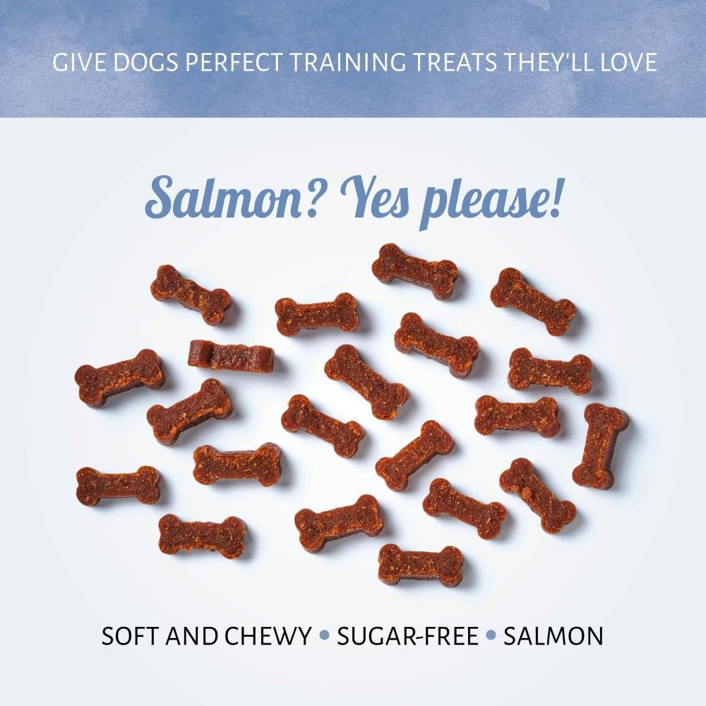 Ihr vierbeiniger Freund wird Ihnen mit unseren Mini Bones Lachs Hundeleckerlis seine ungeteilte Aufmerksamkeit schenken. Diese feuchten, mundgerechten Leckerlis mit fleischigem Inhalt sollen das Training noch verlockender machen.
