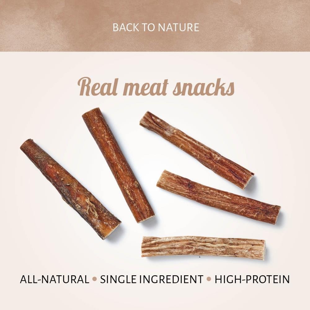 Unsere Ochsenziemer-Hundesnacks vereinen mit jedem Bissen die ganze Köstlichkeit eines Leckerlis. Diese Kausnacks sind problemlos zu verdauen und eignen sich perfekt für kleine, mittlere oder große Hunde. Echte Fleischsnacks, die das "Mmmh"-Gefühl mit nach Hause bringen.