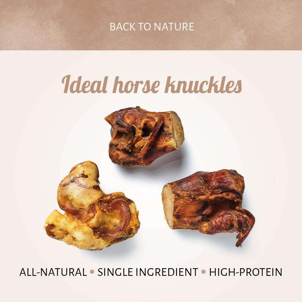 Pferdeknöchel werden langsam getrocknet, sodass die natürlichen Aromen erhalten bleiben. Die schmackhaften Hundesnacks sind eine natürliche Art, den Kauinstinkt zu befriedigen und helfen, destruktives Verhalten zu reduzieren. Ein idealer Kauknochen zur Unterhaltung Ihres starken und fröhlichen "Kauers".