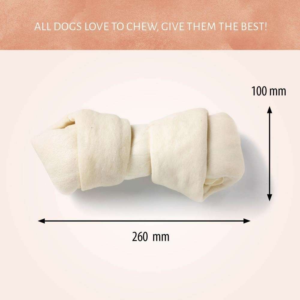 Ihr Kumpel wird es lieben, auf dem Raw Hide White Knotted Bone zu kauen, denn er besteht aus Rohhaut, während die Textur dazu beiträgt, Zahnstein auf natürliche Weise zu beseitigen und die Zahngesundheit Ihres Hundes zu fördern.