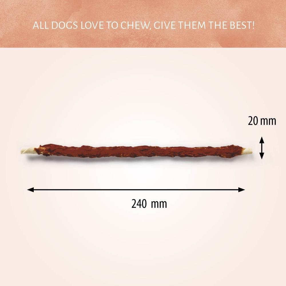 Raw Hide White + Duck Roll bestehen aus 100 % natürlicher Ente, die um einen Stock aus Rohhaut gewickelt ist. Ihr Hund wird es lieben, diese leckeren Leckerlis zu "durchkauen", und die kaubare Textur hilft auch, die Zähne Ihres Hundes zu reinigen.