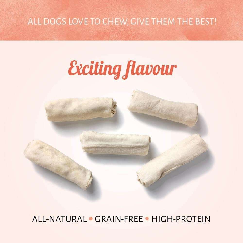 Ihr Hund sehnt sich von Natur aus nach einem fleischigen Kausnack, warum ihn also nicht mit einem kleinen Extra überraschen? Unser Raw Hide White Roll versorgt Ihren Hund mit einer ordentlichen Portion Protein und viel natürlichem Geschmack. Rohhaut in jedem unwiderstehlichen Biss.