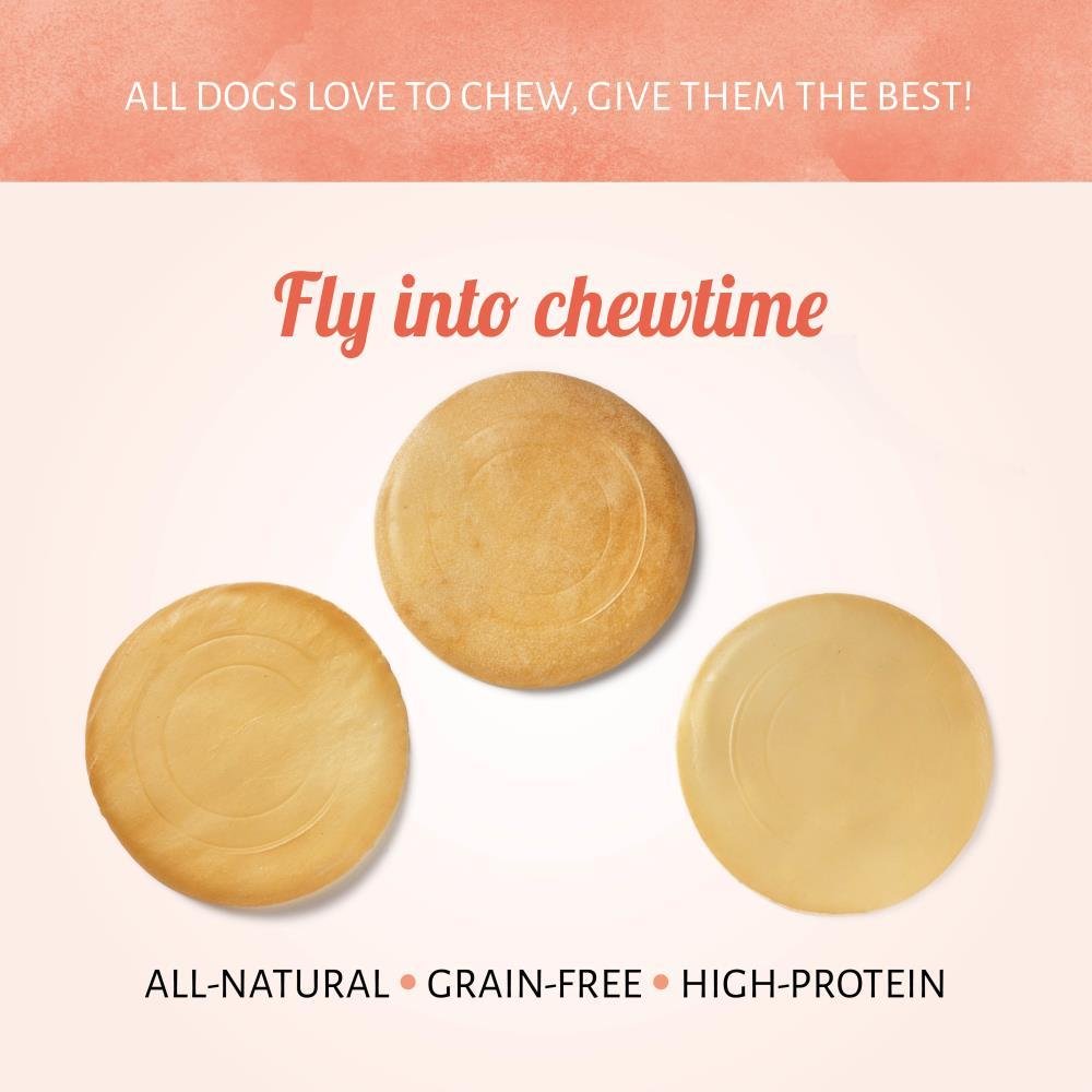 Es ist ein Vogel, nein es ist ein Frisbee! Mit Rinderhaut Frisbee Hundekausnacks bekommt Ihr Hund bald Flügel. Mit diesen naturbelassenen Kausnacks können Sie die Spielzeit Ihres Hundes auf die nächste Stufe bringen. Ihr bester Freund wird davon begeistert sein ...