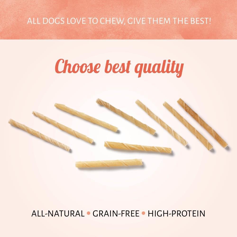 Ihr Hund wird von unseren leckeren Roll Sticks Hundekausnacks begeistert sein, die sowohl viel Geschmack als auch Protein enthalten. Und während Ihr Hund auf den Sticks herumkaut, reinigt er auch seine Zähne. Ihr Vierbeiner kann diesem Kauspaß nicht widerstehen!