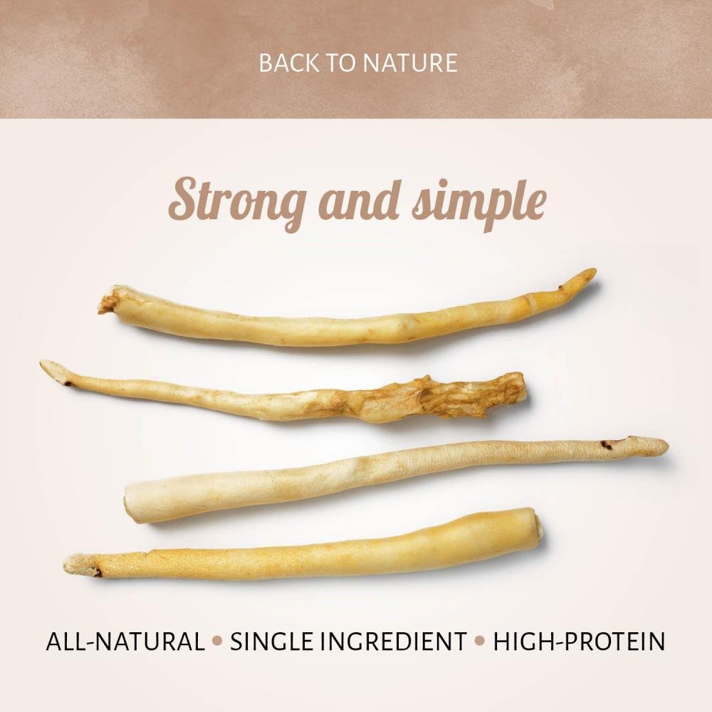 Unterstützen Sie die Zahngesundheit Ihres Hundes, während er auf natürlichem Ochsenschwanz kaut. Die Snacks sind proteinreich mit viel Geschmack zu einer festen, zähen Alternative zu Rohhautknochen. Ihr Hund kaut seinen Zahnstein und seine Plaqueablagerungen weg, was zu saubereren Zähnen führt.