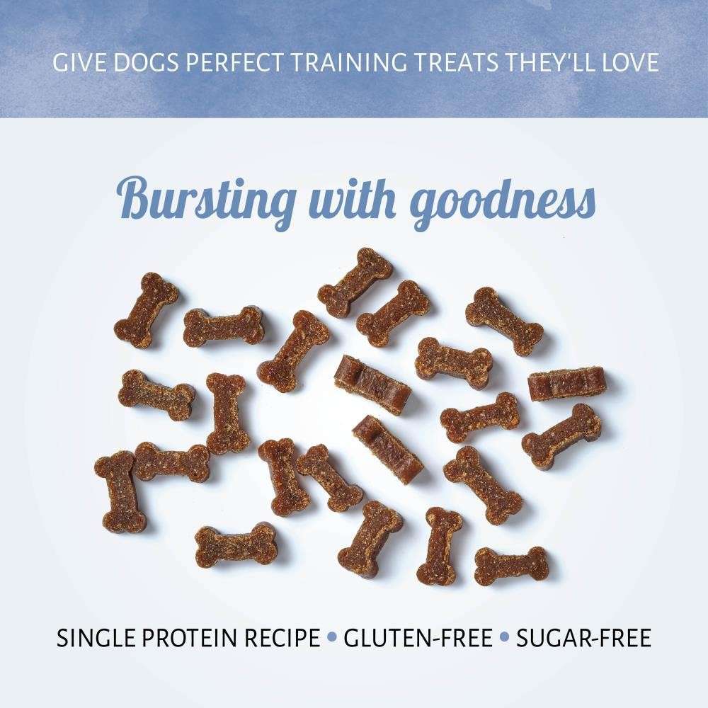 Winzig, lecker: Ausprobieren! Machen Sie das Training für Ihren Hund spannender mit Super Bones Ente&Granatapfel. Diese weichen und schmackhaften Leckerlis bestehen aus Fleisch und haben genau die richtige Größe für eine Trainingsbelohnung, die schnell und einfach zu verfüttern ist.