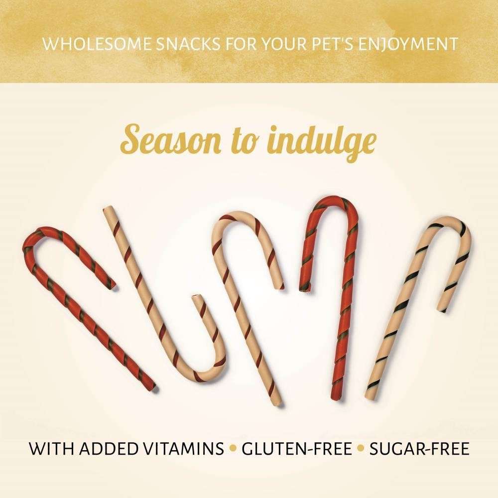 Unsere Sweetieland Candy Canes sind eines der schönsten Vergnügen im Leben und ein wahrer Hochgenuss. Bieten Sie Ihrem vierbeinigen Freund eine gesunde Alternative zu Kausnacks aus Rohhaut. Das Kauen dieser Mini-Zuckerstangen trägt zur Gesunderhaltung der Zähne bei. So wird die Weihnachtszeit für ihn nur noch schöner.