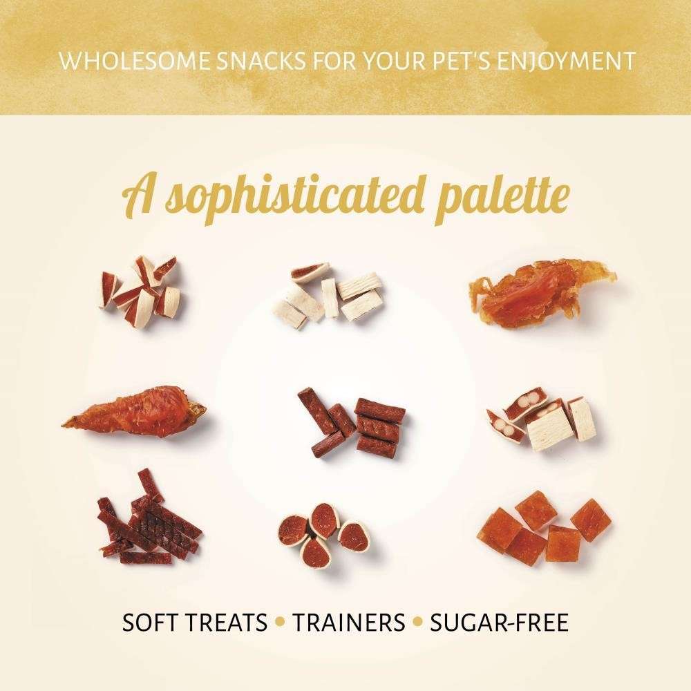 #1 Geflügel, Pollack - #2 Ente filet, Entenleber, Glyzerin - #3 Geflügel, Pollack, Käse - #4 Geflügel (98%), Glyzerin - #5 Geflügel (98%), Glyzerin - #6 Geflügel, Pollack - #7 Geflügel, Kabeljau Haut, Glyzerin - #8 Fisch (70%), Kartoffelstärke, Glyzerin - #9 Sardellen, Geflügel