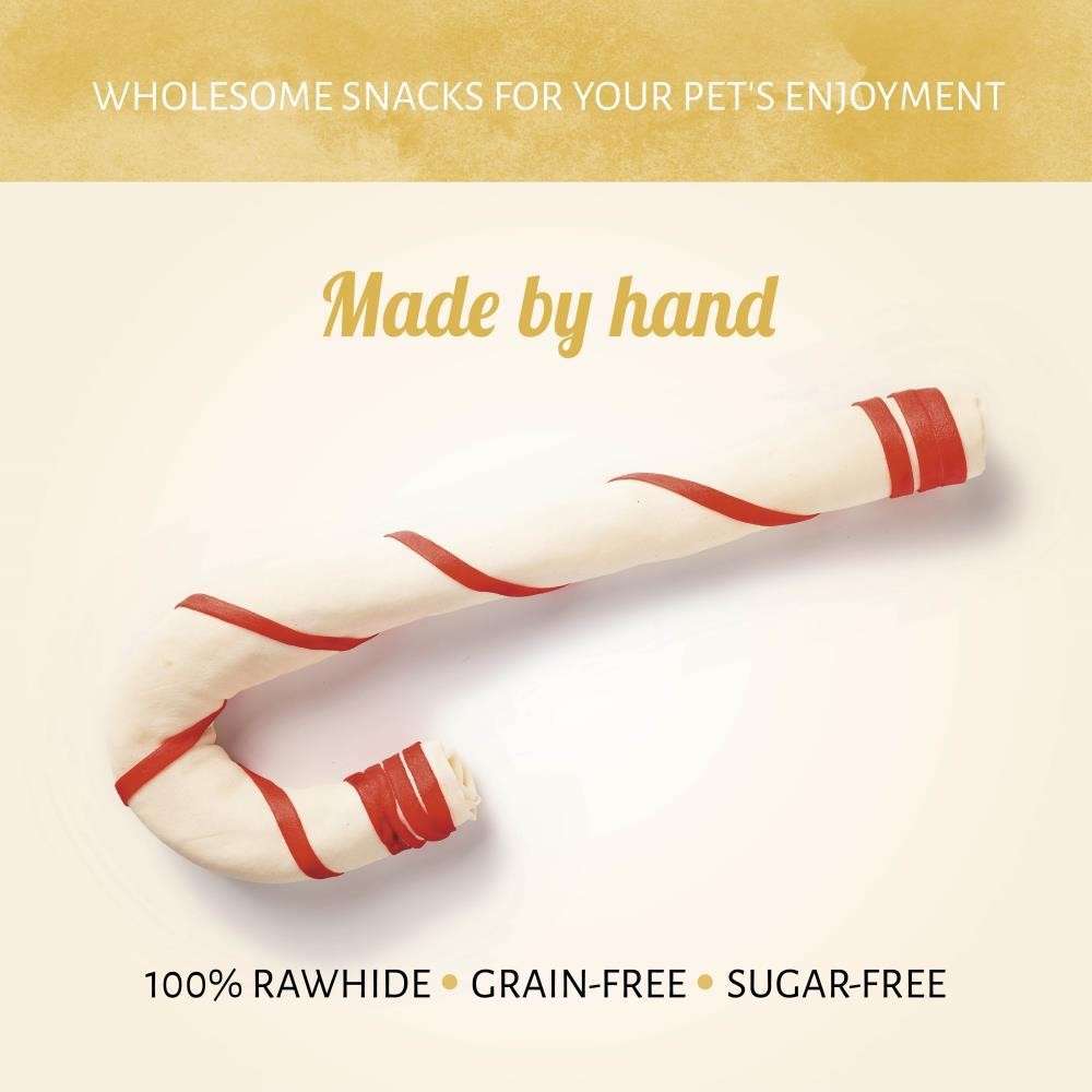Unsere von Hand gefertigte, langlebige Weihnachts-Zuckerstange ist definitiv der Favorit für die Festtage. Dieses sichere und natürliche Kauspielzeug aus Rohhaut ist hell gestreift, um Ihren Hund in Feiertagsstimmung zu versetzen.