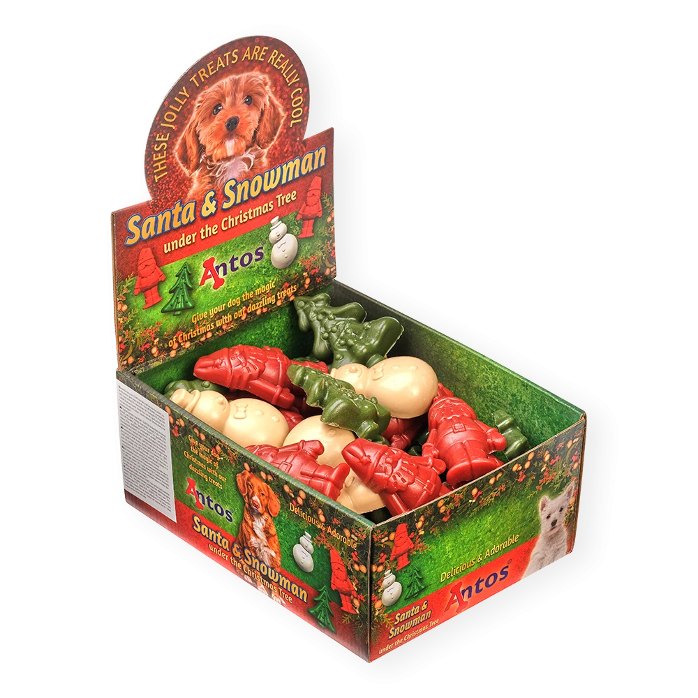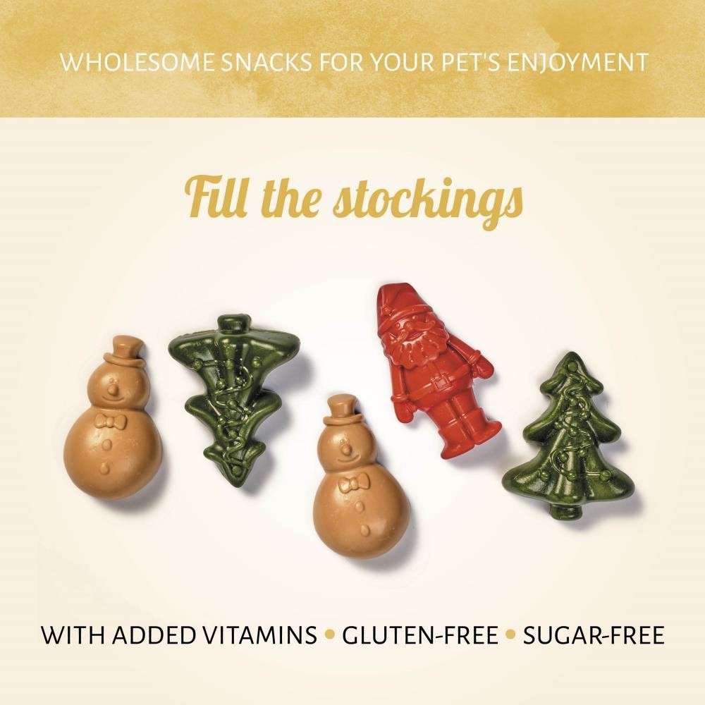 Die Weihnachtszeit ist magisch... Unsere Santa & Snowman -Zahnpflege- Hundeleckerlis sind ein besonders fröhliches süßes Trio. Diese kleinen Zahnpflege-Leckerlis für Hunde mit vegetarischer Rezeptur sind das perfekte Geschenk für die Strümpfe Ihrer Fellnase. Ein wunderbar süßer Snack für die Weihnachtszeit.